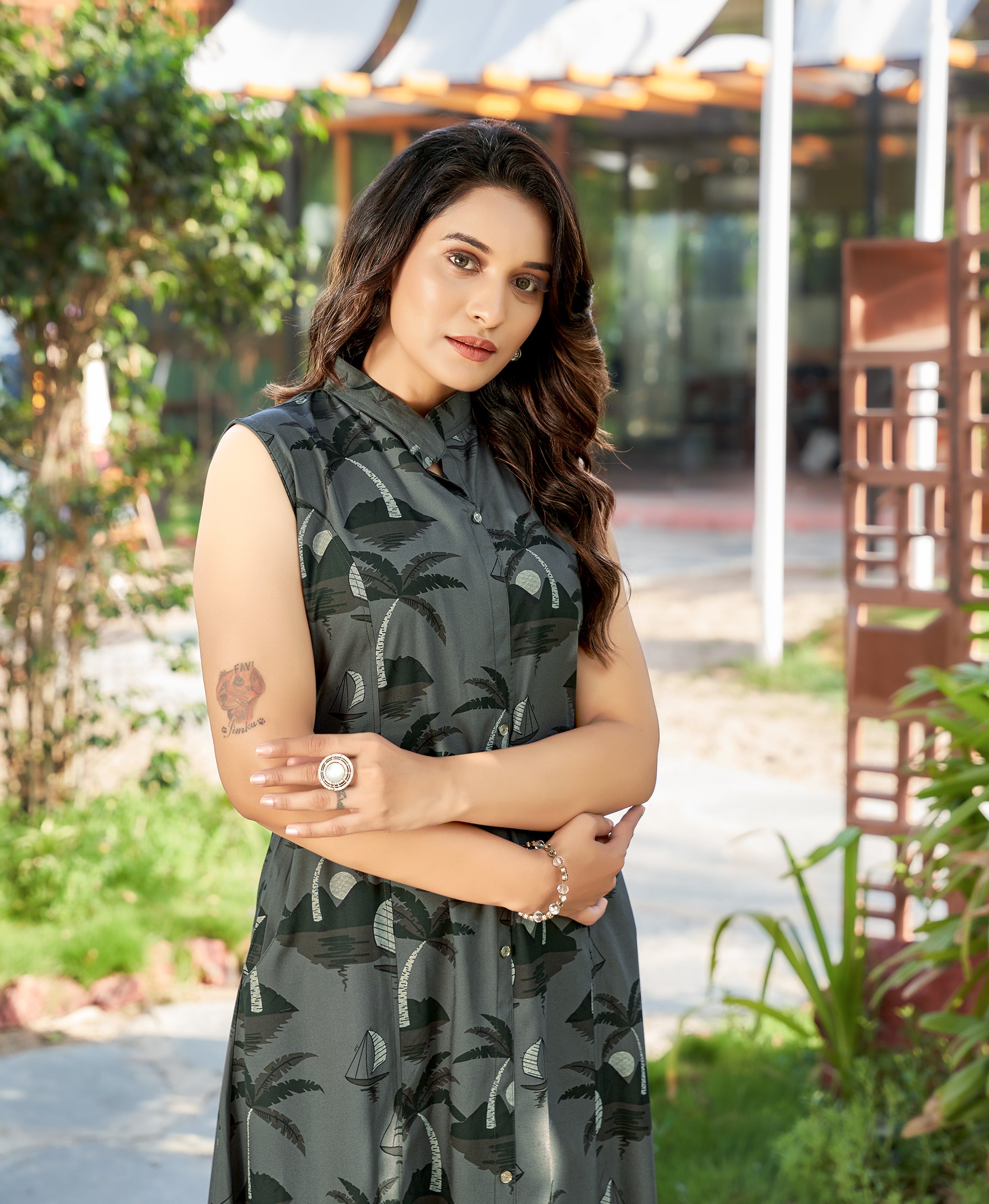 Her Couture Women's Dark Grey Rayon Nature Party Co-ord Set