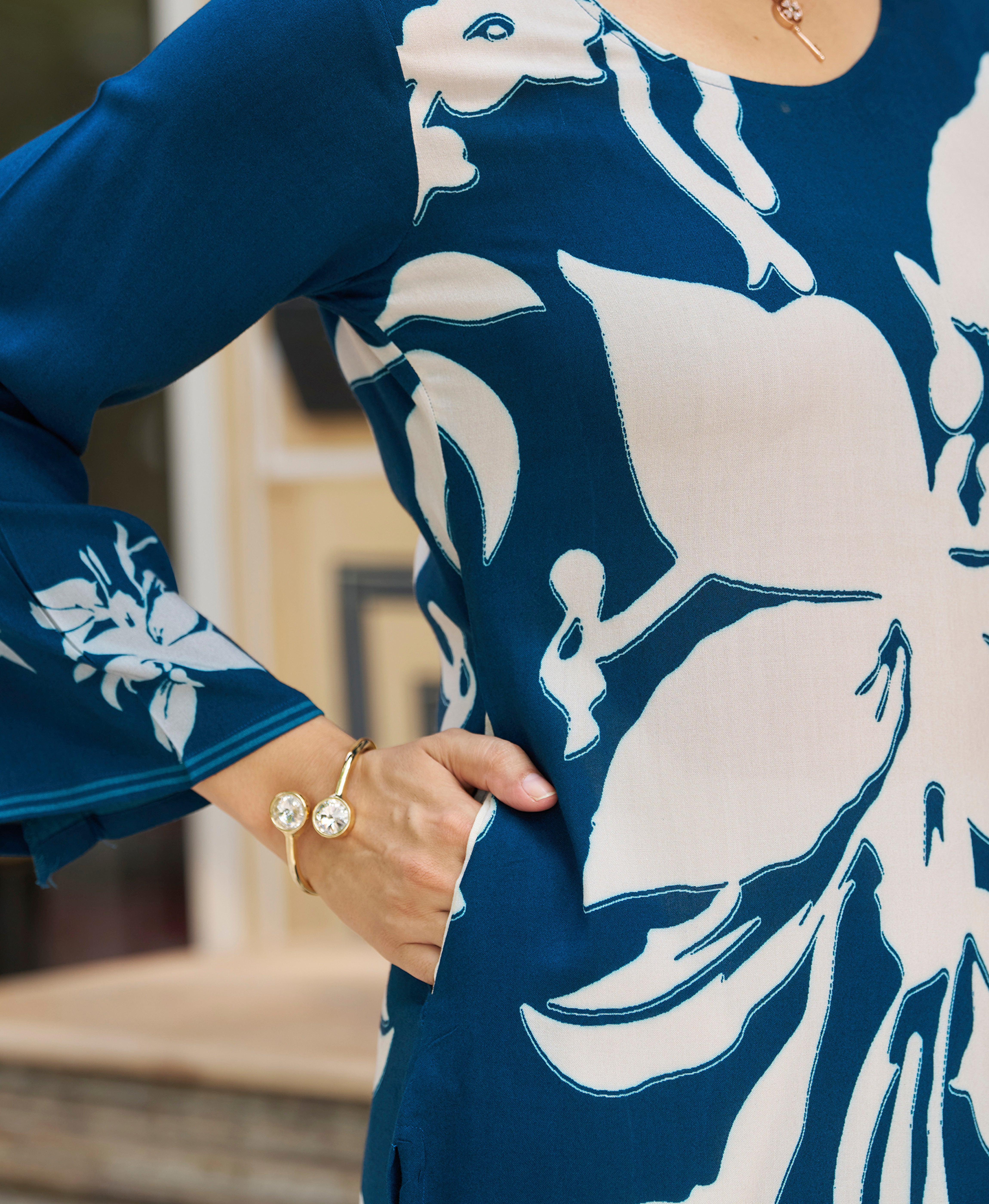 Her Couture Women's Teal Blue Viscose Rayon Floral Printed Straight Kurta